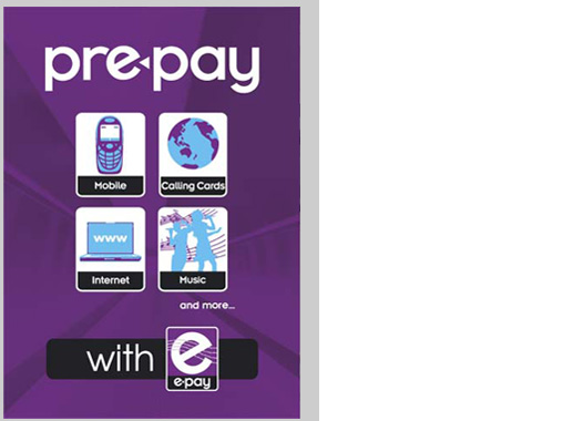 EPAY delivers a pre-pay service for mobile, calling cards, internet and music. New Zealand had already distributed their point-of-sale material whereas Australia agreed to a more eye-catching design.