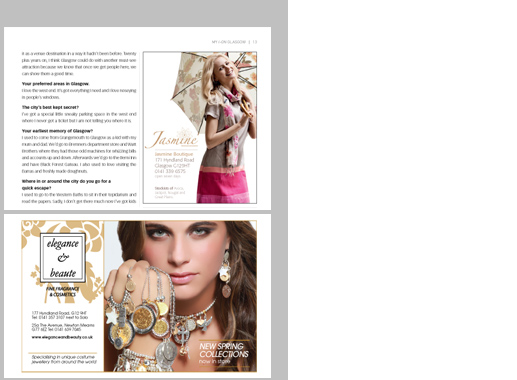 Supporting i-on in-house designer Paul Dickson on the May issue for Edinburgh and the May/June issue for Glasgow, I laid out pages and designed a variety of advertisements for diverse clients.