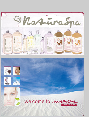Australian International Spa Supplies planned the distribution of products of the existing brand “Cuccio” under the new labels “Mystique Naturale” for tanning and “Naturaspa” for cosmetics. Whereas “Mystique Naturale” already had a look and logo, “Naturaspa” had to be visualised matching that existing appearance.
