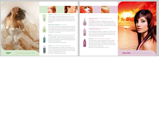 I created a brochure in a handy and cost-effective size. Image manipulation delivered a vibrant and dynamic look and added to the colour scheme of the product range. The full-page imagery stands in contrast to the organised and structured product information.